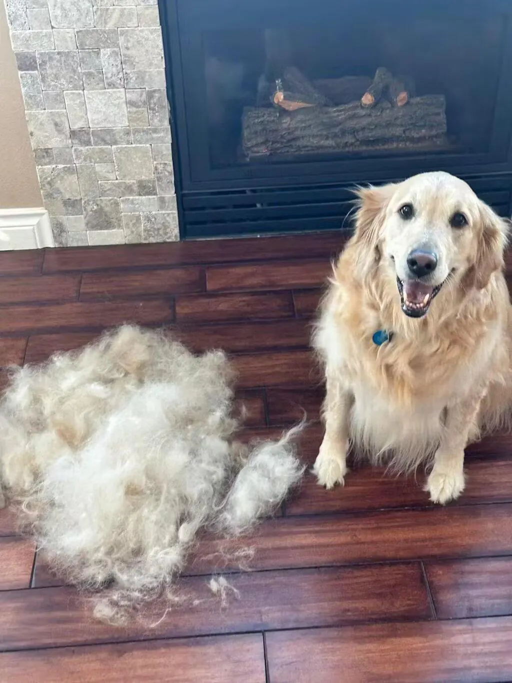 Men nå finnes det en løsning som faktisk fungerer. En børste som glir gjennom pelsen uten å dra, fjerner store mengder løs hår og gjør børstingen til en stund av ro – både for deg og hunden din.